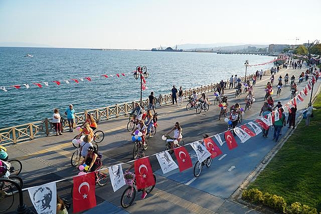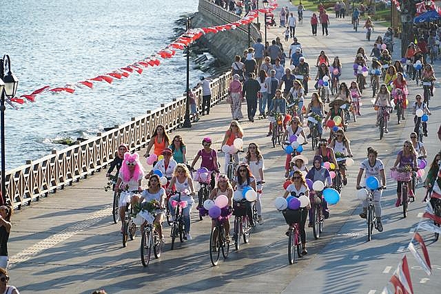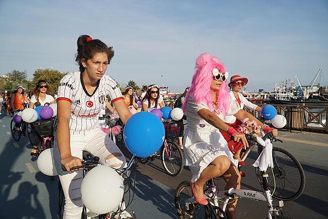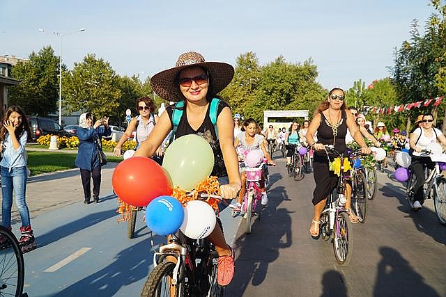 Edirne'de yaklaşık 150 kadın, bisiklet kullanımı yaygınlaştırmak ve farkındalık oluşturmak amacıyla düzenlenen "Süslü Kadınlar Bisiklet Turu"nda pedal çevirdi.Türk bayrakları astıkları bisikletlerini çiçek, balon ve renkli folyolarla süsleyen kadınlar, Saraçlar Caddesi'ndeki Atatürk Anıtı önünde bir araya geldi.Süslü Kadınlar Bisiklet Turu Koordinatörü Esranur Demircan, burada gazetecilere yaptığı açıklamada, bisikletin sadece spor için değil, ulaşım için de kullanıldığını söyledi.Bisikletlerini dikkati çekmek amacıyla süslediklerini belirten Demircan, "Yollar sadece motorlu taşıtlara ait değildir. Yollarda bisikletlilere saygı istiyoruz. Motorlu araçların hiçe saydığı birçok insanı kazalarda kaybettik. Kendilerine rahmet diliyor, saygıyla anıyoruz." dedi.Etkinliğe katılanlardan Sevgi Baştürk de bisikletin sağlıklı ve doğal bir ulaşım aracı olduğunu dile getirdi. Trafikteki tüm taşıtların bisikletlilere saygı duyması gerektiğini ifade eden Baştürk, etkinliğe ailelerin de katılmasının mutluluk verici olduğunu kaydetti.Bisiklet derneklerinin de desteklediği etkinlikte, bisikletliler Karaağaç Mahallesi'ne kadar pedal çevirdi.Tekirdağ'da da yaklaşık 60 kadın tur kapsamında bir araya geldi.Süslü bisikletlerine binen kadınlar, Süleymanpaşa ilçesi sahil dolgu alanından Tekirdağ Yelken İhtisas Kulübü önüne giderek, başlangıç noktasına kadar yalaşık 7 kilometre pedal çevirdi.Etkinlik temsilcisi Nilay Özbahçeliler, AA muhabirine yaptığı açıklamada, "Süslü Kadınlar Bisiklet Turu"'nun, kadınların bisiklet ile daha fazla dışarı çıkabilmesini sağlamak için düzenlendiğini söyledi.