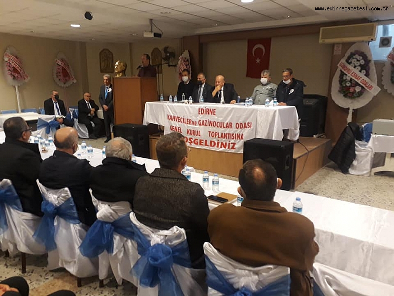 Edirne Esnaf Kefalet ve Kredi Kooperatifi Düğün salonunda gerçekleşen Edirne Kahveciler ve Gazinocular Odası Genel Kurulun Divan Başkanlığını EDESOB Başkanı Kemal Cingöz yaptı. Saygı duruşu ve İstiklal Marşının okunmasının ardından açılış konuşmasını Yapan Başkan Hakan Gönay,üç yılda beri kahveciler esnafları ve diğer üyelerimiz pandemiden dolayı zor günler geçirdi,biz oda olarak üyelerimizin yanında olduk bundan sonrada olacağız dedi.