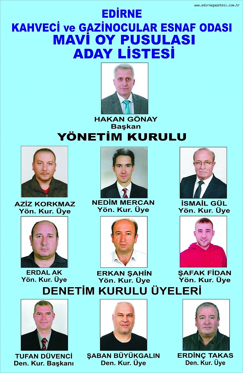 Edirne Kahveciler ve Gazinocular Odası Olağan Genel Kuruluna tek liste ile yeniden aday olan mevcut Başkan Hakan Gönay, üyelerin oyunu alarak güven tazeledi.
