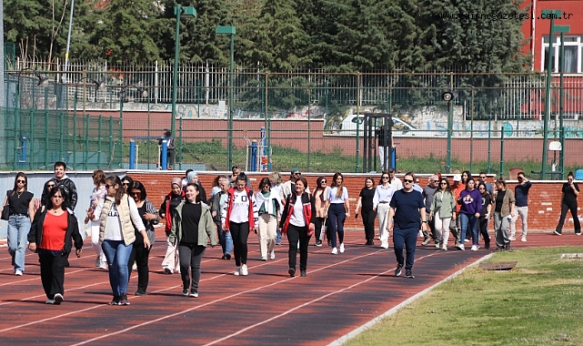 Kalp sağlığına dikkat çekilen pankart ile "sizin sağlığınız için buradayım" ve "şiddet sağlığa zararlıdır" yazılı dövizler taşıyan katılımcılar farkındalık yürüyüşü gerçekleştirdi.