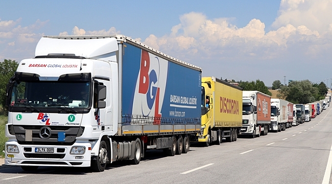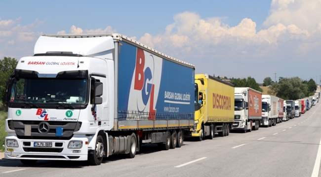 Kapıkule Sınır Kapısı'nda yurt dışına çıkış yapmak için bekleyen tırlar 6 kilometrelik kuyruk oluşturdu.