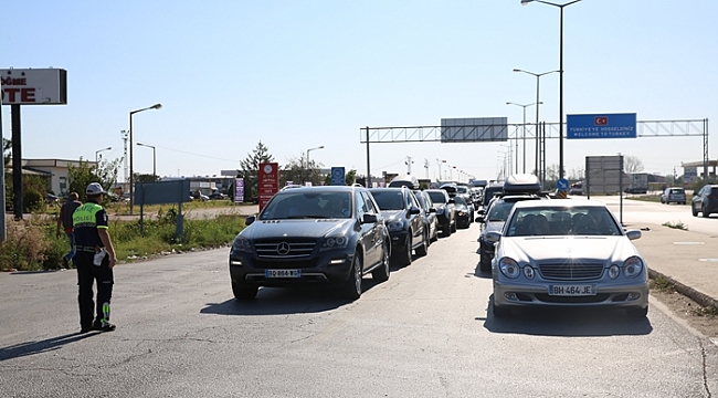 Tatilini Türkiye'de geçirerek yaşadıkları ülkeye dönenlerin araçları, Kapıkule Sınır Kapısı'nda uzun kuyruklar oluşturdu.