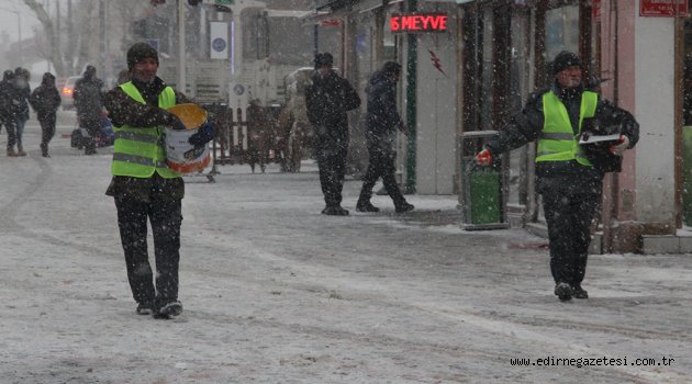 Balkanlar üzerinden gelen soğuk ve yağışlı havanın etkisine giren Edirne'de kışı yoğun yaşamaya devam ediyor. Öğleden sonra etkisini arttıran kar yağışı nedeniyle Edirne Valisi Günay Özdemir, saat 11.00 itibariyle il merkezindeki ilk ve orta dereceli okullarda eğitime 1 gün süreyle ara verildiğini açıkladı. Sabah okula giden öğrenciler ise kar tatili olması sebebiyle evlerine gönderildi.Belediye ekipleri kar yağışına karşı 11 ekip ile 11 ayrı bölgede çalışma başlattı. Edirne Belediyesi, Balkanlar ve Sibirya üzerinden gelen soğuk hava ve kar yağışından dolayı oluşabilecek olumsuzlukları en eza indirilebilmek adına çalışmaları aralıksız devam ediyor.Edirne Valiliği, merkez ve tüm ilçelerinde bağlı bulunan resmi ve özel ilköğretim ve ortaöğretim okulları ve kurumlarında 6 Ocak 2017 Cuma günü, saat 11:00’dan itibaren yarım gün süre ile eğitim-öğretime ara verildiğini duyurdu. Kamu kurum ve kuruluşlarında görev yapan engelli ve hamile personel yarım gün izinli sayılacaktır şeklinde açıklama yapıldı.Öte yandan Uzunköprü ve Meriç İlçeleri arasında bulunan Yakupbey’de mahsur kalan 20 öğretmen şehir merkezine ulaştırıldığı bildirildi. Ayrıca yoğun yağışa bağlı 4 belde ve 26 köye elektrik verilemediği, arızaların giderilmesi için TREDAŞ teknik elemanlarınca çalışmalarını sürdürüyor. Kar yağışı nedeniyle Meriç, Uzunköprü, İpsala ve Havsa İlçelerinde 34 köye, İpsala İlçesine ve bağlı beldelerine ulaşıma kapandı.Meteoroloji Müdürlüğü’nden gelen bilgiler doğrultusunda harekete geçen Edirne Belediyesi, soğuk hava ve kar yağışından kaynaklanacak sorunları en aza indirmek için günler öncesinden hazırlıklarını tamamlayarak aralıksız olarak sürdürüyor. Edirne Belediyesi; 3 greyder, 3 kar küremeli yükleyici, 4 kazıcı yükleyici, 2 yükleyici kepçe, 1 bobcat küçük kepçe, 6 tuz serpme makinesi, 3 sıvı buz çözücü aracı ve 7 kamyon ile 24 saat boyunca çalışmalarına hız kesmeden devam ediyor. 11 ayrı ekibin, 11 ayrı bölgede görev yapacağını ifade eden Edirne Belediye Meclis Üyesi Mahmut Keskin, vatandaşları da tedbirli olmaları konusunda uyardı. Kış lastiği olmayan araçların trafiğe çıkmamaları gerektiğini belirten Keskin, “Araçlarında gerekli önlemleri almayan vatandaşlarımızdan trafiğe çıkmamalarını önemle rica ediyoruz. Vatandaşlarımız toplu taşıma araçlarını kullanarak, ulaşımlarını sağlayabilirler” şeklinde konuştu.