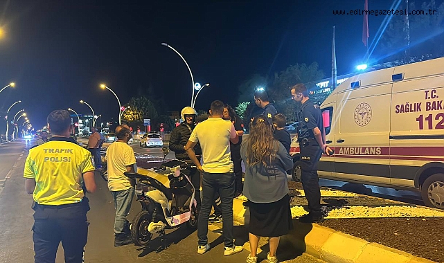 Edirne'de ticari taksi ile elektrikli motosikletin çarpışması sonucu 1 kişi yaralandı.Alınan bilgiye göre, N.G'nin kullandığı 22 T 0239 plakalı ticari taksi, Atatürk Bulvarı'nda, N.K idaresindeki elektrikli motosikletle çarpıştı.Kazada motosikletin arkasında yolcu olarak bulunan sürücüsü N.K'nın eşi M.K yaralandı.M.K. sağlık ekipleri tarafından Edirne Devlet Hastanesine kaldırıldı. AA