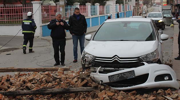 Eski İstanbul Caddesi üzerinde yıkılmış metruk bir binadan kalan baca aracın üzerine devrildi. O an kaldırımdan geçen iki vatandaş ise iki saniye ile faciadan kurtulma anları bir otelin güvenlik kamerasına yansıdı.
