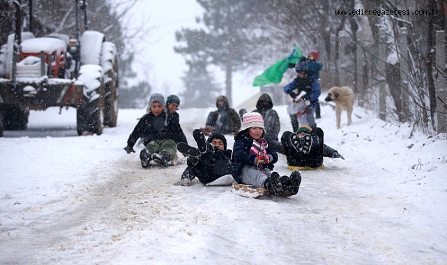 Kırklareli'nin Demirköy ilçesinde çocuklar, yarıyıl tatilinin son gününde kar yağışını eğlenceye dönüştürdü.