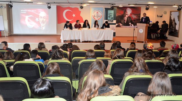 İstiklâl Marşımızın yazarı, Millî Şairimiz Mehmet Akif Ersoy’un vefatının 80.yılı anma etkinlikleri kapsamında, “Vefatının 80. Yılında Akif’i Anlamak Asım’ı Yaşamak” paneli düzenledi.Panel, Gençlik Hizmetleri ve Spor İl Müdürlüğü Konferans Salonunda gerçekleştirildi.Panelin Moderatörlüğünü Edirne Lisesi öğrencisi Gül Güngör üstlenirken, aynı okuldan Cevat Mert Çetin, “Mehmet Akif Ersoy’un Fikir Dünyasında Türkçülük, İslamcılık, Osmanlıcılık, Batıcılık Unsurlarına Bakış Açısındaki Zamansal Farklılıklar”, Ecem Günay ise, “Mehmet Akif’in Şiir Anlayışı ve Safahat’ın Oluşum Süreci” hakkında anlatımda bulundu.Edirne Mesleki ve Teknik Anadolu Lisesi öğrencisi İsmet Aktaş, “Mehmet Akif Ersoy’un Medeniyet Anlayışı” ile ilgili anlatımının ardından son panelist Edirne Akmercan Anadolu İmam-Hatip Lisesi öğrencisi Muhammed Dalkılıç ise “Mehmet Akif’in Öne Çıkan Karakter Özellikleri” katılımcılara anlattı. İl Millî Eğitim Müdürü Hüseyin Özcan, yapmış olduğu konuşmasında: “Nurettin Topçu, “Mehmet Akif” adlı eserinde İstiklal Şairimiz Mehmet Akif Ersoy’u şu sözlerle anlatır: “Büyük adam, eseriyle hayatını birleştiren adamdır. Biz onda şu vasıfları arıyoruz: Önce bütün ömründe aynı kanaatin ayni imanın sahibi olan adamdır. Devirlere, zaruretlere, cemiyetlere göre değişmez, muhitine uymaz; muhiti kendine uydurur, uydurmazsa çarpışır. Cemiyetten daha kuvvetlidir; cemiyetin sürükleyicisidir. Bu karaktere sahip insanların, yani değer yaratıcısı olanların bir kısmı zekâsıyla, bir kısmı kalbi ve hisleriyle, bir kısmı da iradesiyle başka insanlara ve cemiyete üstündür, yaratıcıdır, sahiptir veya velîdir. Bu üstün insanlar arasında ise bazıları her bakımdan, hem zekâ, hem duygu, hem de irade kuvvetleriyle cemiyetin insanlarına üstün durumdadırlar. İşte Âkif, yaradılışın bu lütfuna uğramıştı. Ancak onu, iradesinin ateşli tazyikiyle diğer sahalarda muvazenesizlikten koruyan pek mühim bir sebebin var olduğu da unutulmamalıdır: Bu sebep, demirden bir iradeyi ahenkdar bir ray üzerinde yürüten İslâm terbiyesi ve Allah’a imanıydı. Akif’in hayatını çok iyi bir şekilde irdelerseniz, okursanız, çelişkilerden uzak, istikrar abidesi bir şahsiyet görürsünüz. Hiçbir zaman hiçbir gücün karşısında eğilmemiş, zarar göreceğini bildiğinde dahi doğrudan ayrılmamış, hakkı söylemiş, Hakkın tarafını tutmuş,inandığı dinin değerlerini, peygamberini örnek almış, hayatına da uygulamış hayırlı bir insan. Bu nedenle Mehmet Akif Ersoy Okuma grubundaki değerli gençlerimiz yaklaşık 1,5 yıldır Akif’le ilgili birçok eseri okudular, tartıştılar, arkadaşlarına anlattılar. Bugün de bu projenin son ayağını gerçekleştirmekteler. Bu proje kapsamında öğrencilerimiz 25-28 Ekim 2016 tarihleri arasında Burdur'da düzenlenen ve ülkemizden yaklaşık 300 öğrencinin katıldığı "Akif'i Okumak, Asım'ı Yaşamak" isimli sempozyuma katıldılar ve orada iki öğrencimiz Edirne’yi temsilen konuşma yaptı. Ayrıca Mehmet Akif Ersoy’un vefatının 80. yıldönümünde yani 27 Aralık 2016 Salı günü Ankara’da düzenlenen panellere de altı öğrencimiz katıldı ve bir öğrencimiz panelist oldu. Hem okumaların hem de gerek Edirne’de gerekse Burdur ve Ankara’da sempozyum ve panellerde bulunmuş olmanızın sizleri geliştirdiğini; 1,5 yıl önceki hâlinizden çok farklı bir yere getirdiğini müşahede etmekteyim. Bundan dolayı duyduğum büyük memnuniyetimi de ifade etmek istiyorum.Vatanımızı emanet edeceğimiz siz gençlerin Mehmet Akif’in deyimiyle birer Asım olacağınıza, arkadaşlarınıza örnek olarak çevrenize ışık saçacağınıza inancım tamdır. Okuma gruplarında emeği geçen tüm öğretmen ve öğrencilerimize teşekkür ediyorum.Panel, İl Millî Eğitim Müdürümüz Sayın Hüseyin Özcan tarafından Mehmet Akif Ersoy Okuma Grubu öğretmen ve öğrencilerine “Akif’i Anlamak Asım’ı Yaşamak” paneli nedeniyle Teşekkür Belgesi verilmesinin ardından sona erdi.
