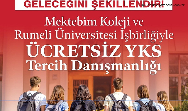 Edirne Mektebim Koleji ve Rumeli Üniversitesi iş birliğiyle, üniversite adaylarına yönelik ücretsiz YKS tercih danışmanlığı hizmeti sunuyor. 30 Temmuz – 5 Ağustos 2025 tarihleri arasında, Erasta  AVM’de kurulacak özel danışmanlık standında öğrencilere profesyonel destek sağlanacak.