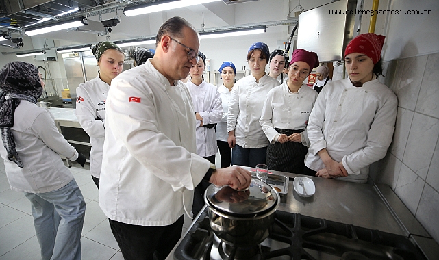 Osmanlı döneminde Edirne ve Balkanlar'a yaklaşık 500 yıl hizmet veren Edirne Muradiye Mevlevihanesi'nde pişirilen yemekler, Trakya Üniversitesi Arda Meslek Yüksekokulu Aşçılık Programı öğrencileri tarafından yaşatılıyor."Yöresel Mutfaklar" dersi kapsamında Mevlevi mutfağı kültürünü inceleyen öğrenciler, yüzyıllar boyunca hazırlanan yemeklere ilişkin hem teorik hem de uygulamalı eğitim alıyor.Derslerde Mevlevi mutfağının tarihi, yemeklerin özgün tarifleri ve kullanılan malzemeler detaylı şekilde ele alınıyor.Şef adayları, geçmişte Edirne Muradiye Mevlevihanesi'nde pişirilen yemekleri, Osmanlı döneminde kaleme alınan ikinci yemek kitabı olarak bilinen ve Edirne Mevlevi Dergahı postnişinlerinden Ali Eşref Dede tarafından 1856-1857 yıllarında yazılan 208 yemek tarifinin yer aldığı yemek risalesindeki reçetelere uygun biçimde, alanında uzman eğitmenler eşliğinde hazırlıyor.Uygulamalı eğitim kapsamında öğrenciler, "hurma kebabı", "balık külbastısı", "süt böreği", "kavun dolması", "susuz pilav" ve "nohut yahnisi" gibi Mevlevi mutfağına özgü lezzetleri aslına uygun yöntemlerle yapıyor.İhya çalışmaları gelecek yıl tamamlanması planlanan Edirne Muradiye Mevlevihanesi'nde yeniden hazırlanacak yemekler için de önemli bir altyapı oluşturuyor.- Mevlevi mutfağı unutulan bir kültürArda Meslek Yüksekokulu Otel, Lokanta ve İkram Hizmetleri Bölümü Başkanı Öğr. Gör. Sedat Kocadoğan, AA muhabirine, Osmanlı'ya başkentlik yapan Edirne'nin zengin mutfak kültürüne sahip olduğunu söyledi.Asırlık lezzetleri gelecek kuşaklara aktarmayı amaçladıklarını vurgulayan Kocadoğan, Edirne'nin unutulmaya yüz tutmuş yemeklerinin yer aldığı Mevlevi mutfağını öğrencilere anlattıklarını dile getirdi.Ali Eşref Dede'nin Yemek Risalesi kitabının Mevlevi mutfağı yemekleri için kendilerine rehber olduğunu anlatan Kocadoğan, şunları kaydetti:"Edirne mutfağı çok katmanlı ve çok kültürlü bir mutfak. Mevlevi mutfağı ise unutulmuş ve bilinmeyen bir mutfak. Biz de bunu gün yüzüne çıkarıp öğrencilerimize aktarmaya çalışıyoruz. Bu kapsamda ilk olarak Mevlevi usulü tas kebabı yemeği hazırladık. Günümüzde teknik olarak et sote olan yemeği Ali Eşref Dede'nin anlattığı gibi kuzu etini çeşitli baharat ve otlarla harmanlayıp tas içinde pişirdik."- Öğrenciler zengin mutfak kültürünü öğreniyorKocadoğan, aşçı adaylarına zengin mutfak kültürünü öğretip geleceğe taşımaları için kapsamlı eğitim verdiklerini anlattı.Mevlevi mutfağının bu zenginliklerden biri olduğunu dile getiren Kocadoğan, şöyle devam etti:"Unutulan yemeklerin tekrar gün yüzüne çıkarılması gerekli ki böylece kendi mutfağımızın değerini bilelim. Bugün hep birbirine benzeyen yemekler yapıyoruz. Oysa ki bizim mutfağımız böyle değil. Gençlerin bu yemekleri öğrenmelerini, kendi geliştirecekleri tekniklerle bu reçetelere destek vermesini bekliyoruz. Çok çeşitli baharatları ve pişirme tekniklerini öğrencilerimizin yemeklerine kattıklarını görebiliyoruz.Ali Eşref Dede'nin kitabında çorbalardan tatlılara, kebaplardan pilavlara ve turşulara kadar çok çeşitli tarifler var. Enteresan tekniklerle pişirilen yemekler var. Bunların hepsi Mevlevihane'de pişmiş. Mevlevi kültüründe mutfak önemli. Mevlevihane'ye kabul edilmek biraz mutfaktan geçiyor. İlk önce 1-2 sene mutfak eğitimi var. Mutfak piri el verdikten sonra aslında Mevlevihane'ye tam olarak kabul ediliyorsunuz."Kocadoğan, Ali Eşref Dede'nin mezarının Muradiye Camisi haziresinde bulunduğunu da belirterek, Mevlevihane'nin ayağa kaldırılmasının büyük kazanım olduğunu vurguladı.- Öğrenciler için yeni bir deneyimÖğrencilerden Sevgi Üngör, Mevlevi mutfağını öğrenmenin kendileri için yeni bir deneyim olduğunu ifade etti.Dersleri kapsamında farklı kültürlerin birbirinden değişik yemeklerini öğrendiklerini dile getiren Üngör, "Çeşitli baharatların kullanıldığı yemekler bize yeni lezzetleri gösteriyor. Mevlevi mutfağı kültürünü öğrenmeliyiz. Aynı zamanda günümüz mutfağına da uygulamak önemli." dedi.Öykü Özgüç ise Mevlevi mutfağında çok farklı tekniklerle hazırlanan yemeklerin bulunduğunu, bu lezzetleri öğrenerek geleceğe taşımayı hedeflediklerini kaydetti.AA