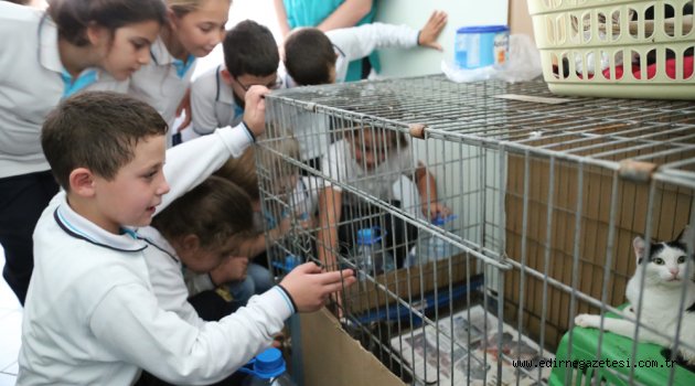 Trakya Birlik İlkokulu’nun minik öğrencileri 4 Ekim Hayvanları Koruma Günü nedeniyle Edirne Belediye Başkanlığı Veteriner İşleri Müdürlüğü Sokak Hayvanları Barınağı’nda can dostlarıyla bir araya geldi.