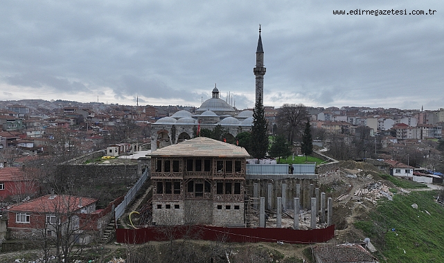 Edirne'de 2. Murat döneminde yaptırılan Muradiye Mevlevihanesi'nin ihya çalışmalarında kaba inşaat büyük ölçüde tamamlandı.Edirne Valisi Yunus Sezer'in talimatıyla başlatılan çalışmalar kapsamında Muradiye Camisi'nin kuzeyinde yer alan mevlevihanede yeniden inşa süreci devam ediyor.Harem dairesi, dede odaları ve kütüphaneden oluşan yapının kaba inşaatı tamamlanırken, semahane binasının kaba inşaatının ise yaklaşık yarısı bitirildi.İkili yapının kaba inşaatlarının tamamlanmasının ardından geleneksel yapı tekniğine uygun olarak Horasan harcı imalatına geçilecek. Bu aşamanın ardından iç mekanlarda ince işçilik çalışmalarına başlanacak.Ahşap yapının mayıs ayı sonuna kadar tamamlanması planlanıyor.- Muradiye MevlevihanesiOsmanlı padişahı 2. Murat tarafından 15. yüzyılda Muradiye Camisi Külliyesi'nde yaptırılan ahşap mevlevihane, tekke binaları, harem dairesi, semahane, dede odaları ve kütüphaneden oluşuyordu.Mevlevi dervişler, öğrenciler ile misafirlerin yemek ihtiyacının karşılandığı imarethanede ise cami minaresinin gölgesinin düştüğü yere kadar olan evlere her gün ekmek, perşembeleri de pilav ve zerde ikram edilirdi.Mevlevihane 1925 yılında bir süre ilkokul olarak hizmet verdi, ardından Trakya Umumi Müfettişi General Kazım Dirik tarafından yıktırıldı.Caminin haziresinde, mevlevihanenin şeyhleri Celalettin Çelebi, Cemaleddin Çelebi, Mehmet Arif Dede, Osman Dede, Şair Neşati Dede, Seyyid Mahmut Dede, Mehmet Emin Dede, Ali Eşref Dede ve Süleyman Dede'nin mezarları yer alıyor.AA