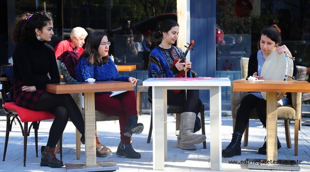 Nar Kadınları Dayanışma Topluluğu üyeleri İstasyon Cafe’de bir araya gelerek, Kadınların toplumda maruz kaldığı negatif olaylar ve nedenler hakkında görüşler belirtildi. Nar Kadınları Dayanışma Topluluğu üyeleri, Kadınların tek başına olmadığını, Yaşanan olaylar karşısında kadınlar birlik ve beraberlik içerisinde olduğunda farklı sonuçlar alınacağının ortak görüşüne varıldı. Nar Kadınları Dayanışma Topluluğu üyesi Emine Ayas, gerçekleştirdikleri birlik beraberlik hareketi ile kadına yönelik oluşan negatif durumlardan, tacize, tecavüze, şiddete ve de nedenleri ile ilgili detaylı bir konuşma gerçekleştirdi. Ayas konuşmasında şunları kaydetti;“Tek başımıza pek çok yerde taciz ve şiddete maruz kalıyoruz. Fakat tek başına çıkan seslerin fayda etmediğini bugün Ayşegül Terzi olayıyla beraber kötü bir şekilde gördük. Örneğin Çilem olayıyla da ilgili kadın dayanışmasının ne kadar önemli ve güçlü olduğunu gördük. Topyekün erkliğe ve erkek iktidarına karşı verilen bir mücadeleydi. Bugün şort giydiği için tekme yiyen ve buna benzer birçok kötü tepkiyle karşı karşıya kalan pek çok arkadaşımız var. Ayşegül kardeşimize tekme atan şahıs alınan ifadenin ardında serbest bırakılmıştı. Ancak biz kadınlar olarak bir arada olduğumuzda sesimizi daha da güçlü ve net bir şekilde çıkardığımızda ne kadar etkili olduğumuzu gördük. Ülkemizde hemen hemen her gün kadın bedeni üzerinden politikalar yürütülüyor. Bu aslında kadının hayatta olan yerini soyutlaştırmaya yönelik politikalar. Örneğin; ‘Kadın, 3 çocuk doğursun. Kadın tecavüze uğruyorsa doğursun’ vs. gibi pek çok politikalarla bizim bedenimiz üzerinden negatif konuşan ve bir şeyler üretmeye çalışan iktidarlar ve de insanlar var. Oturduğumuz yerden, televizyon izlerken bu olaylara tepki vermek farklı. Bir arada olmak sesimizi duyurmak çok daha farklı ve etkili. ‘Yahu buda mı olur?’ şeklinde tek başınıza yalın bir şekilde tepkiler verirseniz. Tepkileriniz sadece ‘Yahu’ demekle kalır.Geçen sene Nurettin Yıldız olayında yaptığımız gibi topluca ve birlik içinde karşılık ürettiğimizde ne kadar etkili olduğumuzu gördük. Sürekli taciz, tecavüz ve şiddet olayları duyuyoruz. Yetkili kişilerin yaptıkları araştırmalarda bu oranların yüksek sayılarda olduğunu da görüyoruz. Artık tacize tecavüze ve şiddete karşı güçlü bir ses çıkarmak istedik ve başarılı olduk. Aslında tüm Türkiye’nin genelinde bu harekete ihtiyaç varmış. Nurettin Yıldız olayında gösterdiğimiz birlik ve beraberlik çok etkili oldu ve farklı illerde buna benzer kadın dayanışma topluluklarının gösterdiği tepkiler büyük sesler getirdi. Sadece tacize, tecavüze, şiddete vs. değil buna neden olan şartlara da tepkilerimizi göstermeliyiz. Bütün kadınlar bir araya gelerek bu gibi durumlara karşı sesimizi daha çok duyurmamız gerek. Farkındalık ve duyarlılık yaratmamız gerek. Gerekli olan yan yana durmamız. Bu sebeple tek başına değil de hep beraber, birlik içinde kadınlara yönelik olan taciz, şiddet vs. gibi durumlara tepkimizi göstermenin yolu bir arada olmaktır.” Nar Kadınları Dayanışma Topluluğu üyesi Yağmur Elitov ise söz alarak, “Bir Nurettin Yıldız meselesi ile karşı karşıya kaldık. Onun üstünden biz buradayız kadınla burada. Edirneli kadınlar gericiliğin karşında durabilir ve Nurettin Yıldız gibi bir gerici yobaz çocuk düşmanı insanların Edirne’de yeri yoktur diyebildik. Bu tavrımızı da çok rahat koyabildik. Bizim burada koyduğumuz tavırda tüm Türkiye’de gelişen bir tavır oldu aslında. Tüm Türkiye’de bu konu hakkında bir geri dönüş, bir karşı duruş sergilendi. Olay çok çabuk gündeme oturabildi. Çünkü mesele sadece bir kişiye bağlı değildi. Mesele gericiliği çocuk, kadın düşmanlığının, tecavüzün, tacizin karşısında bizim laiklikten yana özgürlükten yana demokrasiden yana olan, kadın özgürlüğünün, çocuk özgürlüğünün öneminin farkında olan kesimin karşı duruşu aslında söz konusuydu. Buna dair biz ne yapabiliriz diye düşünmüştük Edirne’de. Bu yüzden Nurettin Yıldız meselesi bizim için çok başarılı geçti her yerde olumlu dönüşler aldık. Birlikte büyüdük birlikte büyüttük. Bunun dışında yan yana geldik film izledik, dertlerimizi anlattık, yan yana geldik oturduk bir çay içtik, güldük, gülüştük, ağlaştık belki ama çok şey paylaştık. Edirne’de aslında kadınların yan yana gelebileceği bir alan yoktu. Biz de dedik ki yan yana gelince biz daha güçlüyüz. Yan yana durunca daha güçlü oluyoruz” şeklinde konuştu.