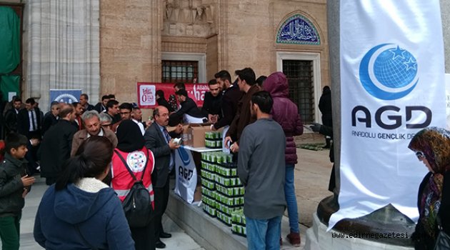 Anadolu Gençlik Derneği Edirne Şubesi tarafından, Selimiye Camii’nde kılınan cuma namazının ardından, cemaate pilav-ayran ikram edildi.