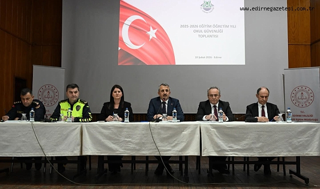 2025–2026 Eğitim Öğretim Yılı Okul Güvenliği Değerlendirme Toplantısı, Edirne Valisi Yunus Sezer başkanlığında Halk Eğitim Merkezi Salonu’nda gerçekleştirildi.