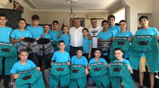 Süloğlu Belediye Başkanı Mehmet Ormankıran belediye adına 6 yıldır güreşen sporculara kıspet ve pıtpıt hediye etti.