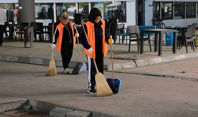 Temizlik İşleri Müdürlüğü personelleri tarafından yürütülen çalışmalarda terminalin ortak kullanım alanları, peronlar, bekleme salonları ve çevresinde detaylı temizlik yapıldı.