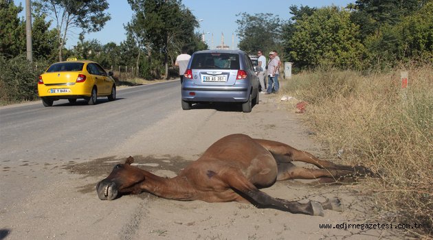 Edirne'de otomobilin çarptığı başıboş at telef oldu.