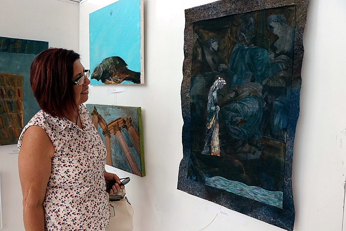 Balkan Kongre Merkezi fuaye salonunda açılan sergide, sulu boyayla resmedilen ve eserlerin altında Rumen şair Ovidius'un şiirlerinin yer aldığı 98 eser sanatseverlerin izlenimine sunuldu.