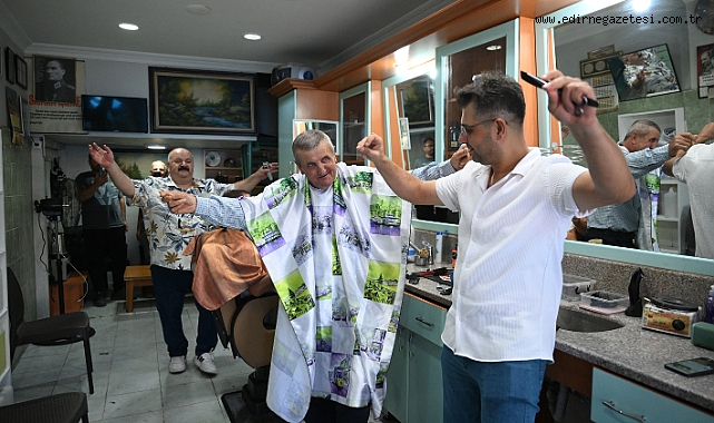 Edirne'nin Havsa ilçesinde müşterilerini oyun havası eşliğinde danslarıyla tıraş eden 46 yaşındaki berber Kasım Ceylan, ilçeye neşe saçıyor.23 Kasım Caddesi'ndeki dükkanında 30 yıldır berberlik yapan Ceylan, müşterileriyle önce dertleşiyor, ardından müzik eşliğinde dans ederek türkü söylüyor.Tıraşa kısa aralar vererek oyun havası açan Ceylan’a çoğu zaman müşterileri de eşlik ediyor. Bu anları sosyal medyada paylaşan Ceylan, kısa sürede geniş kitleye ulaştı.- "İnsanları güldürebiliyorsak ne mutlu bize"Ceylan, AA muhabirine, kendisini müziğe ve mesleğine adadığını söyledi.Müşterilerine dükkana geldiklerinde oyun havası açtığını belirten Ceylan, "Biz Trakyalıyız, oynamayı çok severiz. Sosyal medyada da bir kitle sahibi olduk. Müşterilerimiz geliyor, 'Kasım neden oyun havası açmıyorsun?' diyorlar. Açıyoruz, başlıyoruz oynamaya. İnsanları güldürebiliyorsak, yüzlerinde bir tebessüm yaratabiliyorsak ne mutlu bize." diye konuştu.- "Terapi şeklinde, rahatlamak için oynuyoruz"Ceylan, sosyal medyada paylaştığı videoların çevresi tarafından beğeniyle izlendiğini dile getirdi.İşini severek yaptığını anlatan Ceylan, şunları kaydetti:"Bir terapi şeklinde, rahatlamak için oynuyoruz. Tıraşa ara veriyoruz. Benimle birlikte müşteri de kalkıyor oynamaya. Parayı kaybet ama neşeyi kaybetme. Biz 10 kardeşiz. Varlığı da yokluğu da biliyorum. Ertesi güne çıkacağımızın garantisi yok.İnsanlarımıza neşe kaynağı oluyoruz. Sevenimiz var, çok şükür. Severek yaparım işimi. Müşterilerimle bir bütünüz. Başkasına anlatamadıklarını bana anlatırlar, ben onlara anlatırım. Terapi gibi. Genelde oynuyoruz ama yeri geliyor, ağlıyoruz. Ağlamak da bir erdemdir, herkes ağlayamaz."- "Havsa'nın neşe kaynağı"Taptık köyünden Davut Özel de Ceylan'a tıraş olmak için köyünden ilçeye geldiğini belirtti.Tıraş olurken stresini attığını ifade eden Özel, "Devamlı Kasım kardeşime gelirim, tıraşımı olurum, oyunumu oynarım. Eğleniriz, sonra köyüme geri dönerim. O beni damat gibi tıraş eder." dedi.Şaban Dalkıran da başka yerde tıraş olamadığını söyledi.Neşe dolu tıraş olduğunu ifade eden Dalkıran, "Edirne'de ikamet ediyorum ama tıraş olmak için buraya geliyorum çünkü onun neşesi, ruhu var. Bana enerji veriyor. Buraya gelince gençleştiğimi hissediyorum." diye konuştu.Murat Özen de eniştesi Ceylan'ın Havsa'nın neşe kaynağı olduğunu belirtti.İlçede birçok kişinin Ceylan'ın paylaştığı videoları izlediğini anlatan Özen, "Çoluk çocuk, genç yaşlı, herkes Kasım'ı izliyor, seyrediyor. Ben tır şoförüyüm, yurt dışında bazen canım sıkıldığında açıp onun videolarını izliyorum. Keyfim yerine geliyor. O, bizim neşe kaynağımız." ifadelerini kullandı.Taksici Serkan Arslan da Ceylan'ı görmek için her gün dükkanına uğradığını belirterek, "Neşemizi yerine getiriyor, stresimizi atıyoruz. Herkesin böyle güzel bir arkadaş grubu olsun ki neşeleri yerinde olsun." dedi.Orhan Can da dayısı Ceylan'ın eğlencenin duayeni olduğunu söyledi. AA
