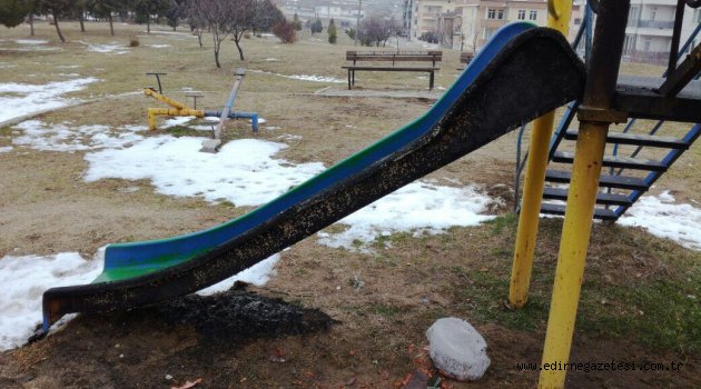 Edirne Belediye Başkanı Recep Gürkan, Şükrüpaşa Mahallesi Ahmet Yesevi Cami Arkasında bulunan çocuk parkının ve Fatih Mahallesi’ndeki parkta oturma banklarının kimliği belirlenemeyen kişi veya kişilerce yakıldığını bildirerek, olayla ilgili savcılığa suç duyurusunda bulunduklarını belirtti.Gürkan, geçtiğimiz akşam çocuk parkında bulunan çöp konteynırında muhtemelen ısınmak amaçlı ateş yakan kişi veya kişilerin, çöp konteynırı dışında da ateş yakarak parkta bulunan masa ve oyun aletlerinin de yakıldığını söyledi. Aynı akşam Fatih Mahallesi’ndeki parkta da kimliği belirsiz kişi veya kişilerin ahşap masa üzerinde ve çöp konteynırında da ateş yakarak parka zarar verdiklerini belirten Edirne Belediye Başkanı Recep Gürkan, “Belediye ekiplerimiz çocuk parkına giderek zararları tespit ettiler. Çocuklarımızın tatilde olduğu bu günlerde oyun alanlarının yakılmış olması üzüntü verici. Edirne Belediyesi olarak, çocuklarımızın oyun alanlarını en kısa sürede yenileyeceğiz. Fakat hangi zihniyetle çocuk parkında bulunan oyun aletleri yakılır anlamak mümkün değil. Bunu yapanları araştırıyoruz. Hemşehrilerimin takdirine sunuyorum” dedi. Gürkan, çevrede bu tür bir olayı gören vatandaşların anında belediyenin ALO 153 hattını ya da polisi arayarak bilgi vermelerini istedi.