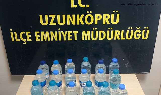 Edirne'nin Uzunköprü ilçesinde düzenlenen operasyonda 11 litre el yapımı sahte alkollü içki ele geçirildi.İlçe Emniyet Müdürlüğü Suç Önleme ve Soruşturma Büro Amirliği ekipleri, Rızaefendi Mahallesi'ndeki işyerinde el yapımı sahte alkollü içki satıldığı bilgisi üzerine çalışma başlattı.Şüpheli K.K'nın işyeri, evi aracında yapılan aramada pet şişelere doldurulmuş 11 litre sahte içki ele geçirildi.Gözaltına alınan şüpheli emniyetteki ifadesinin ardından serbest bırakıldı. aa
