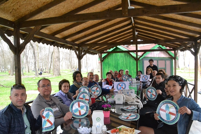 Edirne Çevre Gönüllüleri Derneği, Edirne Belediyesi Başkanlığı, Esnaf ve Sanatkarları Odaları Birliği ile ortak olarak hazırlanan Çevre Dostu İşletmelerde Yeşil Logo Verilmesi Projesi tanıtımı 17 Mart Cumartesi günü Edirne İzzet Arseven Kent Ormanı Edirne Belediyesi Kahvaltı Salonu’nda gerçekleştirildi. Toplantı öncesinde Edirne Çevre Gönüllüleri Derneği üyeleri ile hep beraber alanda bulunan çöpleri topladıktan sonra basın açıklaması yaptılar.Özellikle plastiğin zararlarından bahsederek Edirne’de bulunan esnafların şişe suyu satılması ve plastik torba yerine bez şeklinde olan bez torbaları kullanmaları yönünde çağrıda bulundular.Toplantıya Edirne Belediyesi Başlan Yardımcısı Ertuğrul Tanrıkulu, Edirne Esnaf ve Sanatkarlar Odası Başkanı Emin İnağ, Bakkal ve Tekel Bayileri Odası Başkanı Süleyman Yaşagör, EDOSK adına Neslihan Çakır, Kent Konseyi Adına Ziya Gökalp Küçük yer aldı.Edirne Çevre Gönüllüleri Derneği adına Ayten Eren şunları söyledi: “Yaklaşık bir yıldır Edirne Çevre Gönüllüleri Derneği olarak çevre ve insan sağlığına ciddi zararları olan plastik su şişelerinin azaltılmasına yönelik çalışmalar yapmaktayız. Bunları kullanmayan lokanta, kafeterya ve benzeri Çevre Dostu işletmelere yeşil logo verilmesi projesine muhatap kurumlardan Edirne Belediye ve EDESOB la birlikte çalışmalarımıza devam ediyoruz. Çok ciddi çevre kirliliğinin yanı sıra insan sağlığını da eden bu materyallerin tüketiminin azaltılması amacıyla hazırladığımız çalışmaya herkesin destek vermesi ve sahiplenmesinin çağdaş kent Edirne imajına büyük katkı sağlayacağını düşünüyoruz.Ülkemiz genelinde belki de bir ilki başarmanın onurunu birlikte paylaşmak, benzer projeleri diğer illerde de yaygınlaşması ve ülke genelinde sahiplenilmesinin öncülüğünü Edirne Belediyesi ve EDESOB 'un yapması kentimizde yaşayan herkes için ayrıca gurur kaynağı olacak.. Plastikler neredeyse hayatımızı ele geçirmiş durumda.Pet şişe, poşet, pipet, çatal ve bıçak gibi sürekli kullanmak zorunda olduğumuz bu ürünlerin plastikten yapılmış olması hem insan sağlığına hem de doğaya zararlı. Her yıl 500 milyar ton üretilen plastik şişelerin yarısından fazlası, bir defalık kullanımın ardından çevreye atılıyor. Sahilde, yol kenarlarında, parklarda görmeye alışkın olduğumuz pet şişeler, poşetler görüntü kirliliğinin yanı sıra insan sağlığını korkunç bir şekilde etkiliyor; denizlere ve okyanuslara ulaşarak başka canlılara zarar veriyor. Durumun en endişe verici tarafı ise tıpkı bir bumerang gibi, doğaya bırakılan plastiğin yediğimiz balıkla bile tabağımıza geri dönüyor olması.- 1 tane cam şişeyi tekrar tekrar kullanmanız, yılda 240'dan fazla plastik şişenin satın alınmasını ve tüketilmesini önlüyor - Bir plastik şişenin doğadan tamamen yok olması 450 yıl sürüyor - Plastik su şişeleri, her yıl 120 milyon ton fazladan atık üretiyor Her yıl en az 1 milyon deniz kuşu, 100 bin deniz memelisi ve deniz kaplumbağası, plastik kirliliği sebebiyle ölüyor. - Okyanustaki çöplerin yüzde 90'ı plastikten oluşuyor. Yapılan araştırmalarda plastik kaplarda bulunan Bisfenol A (BPA) adlı maddenin kalp hastalıklarını arttırdığı biliniyor. Bu maddenin şişelerde ve yemek kaplarında yasaklanması gerektiği savunuluyor. Amerikalı biliminsanlarının yaptığı açıklamaya göre, Bisfenol A insanlarda göğüs kanseri diyabet,erkeklerde kısırlık, ve prostat kanseri gibi hastalıklara yol açıyor. Şişelerde gözle görülmeyen bir çatlak, Bisfenol A'nın suya sızmasına sebep oluyor. Plastik şişelerin doğaya çıkardığı fatura da yüksek. Her bir plastik şişeyi üretmek için şişenin dörtte birini dolduracak kadar petrol gerekiyor. Her yıl 2.7 milyon ton plastik, sadece su şişesi üretmek için kullanılıyor. Plastik doğada çözünmüyor, 450 sene sonra fotosentezle parçalara ayrılıp toprağı veya suyu kirletiyor. Bizler de bu gerçeklerden yola çıkarak bu çalışmayı başlattık.” PROJENİN AMACIDaha sonra projeyle ilgili bilgiler sunan Eren, “Çevre Dostu İşletme projenin konusu; gıda satılan işletmelerde plastik kullanımını azaltmak. projeye katkıda bulunanlar: -Edirne Çevre Gönüllüleri Derneği, -Edirne Belediyesi, -EDESOBProjenin amaçları (Genel) 1-Toplumda çevre bilinci oluşturmak, 2-Çevre kirliliğini önlemek, 3-Plastik kullanımını azaltmak, 4-Geri dönüşüme katkıda bulunmak.