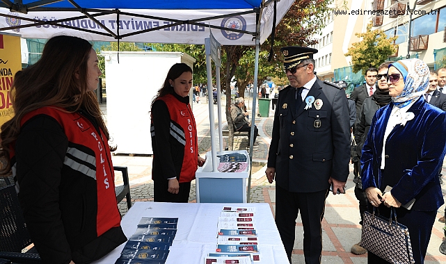 - Edirne'de Türk Polis Teşkilatının 180. kuruluş yıl dönümü etkinlikleri kapsamında tanıtım standı açıldı.İl Emniyet Müdürlüğü ekipleri Saraçlar Caddesi'nde oluşturulan stantlarda mesleği tanıttı.Birimleri tanıtan broşürler ile çeşitli hediyelerin dağıtıldığı etkinlikte narkotik köpeği de ilgi odağı oldu.Edirne Emniyet Müdürü Onur Karaburun stantları gezerek polislerle sohbet etti.Karaburun, çocuklara "Edirne kızancıkları" adlı boyama kitabı, boya kalemi ve üzerinde polis fotoğrafının yer aldığı "Kahramanlar her yerde" yazılı yap boz hediye etti, vatandaşlara polis rozeti taktı.Karaburun, gazetecilere, huzur ve güvenin sağlanması için polis ekiplerinin gece gündüz çalışmalarını sürdürdüğünü söyledi.Trafikle ilgili önemli hedeflerinin olduğunu belirten Karaburun, "Türkiye ortalamasının altında bir kaza sayısına ulaşmak istiyoruz. Önemli çalışmalarımız var. Asayiş ile ilgili birçok konuda Türkiye ortalamasının ciddi anlamda altındaki suç oranlarını yakalamış bulunmaktayız. Edirne polisi için gurur verici bir çalışma. Bu bizim için yeterli değil her geçen gün daha iyiye yürüyeceğiz ve daha iyisi için çalışacağız." dedi. AA