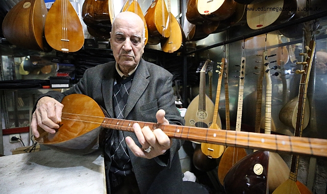 Edirne'de 80 yaşındaki saz ustası Ramadan Korkmaz, Tarihi Alipaşa Çarşısı'nda 66 yıldır müzik aletlerinin tamirini ve satışını yapıyor.Küçük yaşlarda katıldığı bir musiki konserinden etkilenerek müziğe ilgi duymaya başlayan Korkmaz'ın hayatı, arkadaşıyla aldığı kırık bir sazla değişti.Tamir ettirdiği sazı kendi çabalarıyla çalmayı öğrenen Korkmaz, zamanla sazda ustalaştı.Babasından miras kalan dükkanda mesleğini sürdüren Korkmaz, yıllar içinde yalnızca esnaf değil, aynı zamanda müziğin ve kültürel mirasın gönüllü taşıyıcısı oldu.Halk Eğitim Merkezindeki müzik çalışmalarına katılan, çeşitli korolarda görev alan Korkmaz, uzun yıllar Rumeli Türküleri Topluluğu bünyesinde konserler verdi.- "Amacımız gençlere ve öğrencilere Türk halk müziğini sevdirmekti"Türküler seslendirerek Türk halk müziğini yeni kuşaklara aktaran Korkmaz, AA muhabirine, müziğin hayatının merkezinde olduğunu söyledi.Yıllarca Halk Eğitimi Merkezi, turizm derneği, musiki cemiyeti ve İl Kültür Müdürlüğü çatısı altında çalışmalar yaptıklarını anlatan Korkmaz, "Yaklaşık 20 yıl Rumeli Türküleri Topluluğu ile faaliyet gösterdik ve her yıl konserler verdik. Amacımız gençlere ve öğrencilere Türk halk müziğini sevdirmekti." dedi.Korkmaz, elinden geldiğince bu kültürü aktarmaya çalıştığını belirtti.- "Sağlığımı müziğe borçluyum"Dükkanının yerli ve yabancı ziyaretçilerin de ilgisini çektiğini dile getiren Korkmaz, Türkiye'nin farklı illerinden ve yurt dışından gelenlerin müzik aletlerine merakla baktığını ifade etti."Gelenlere sazı tanıtıyor, çalıyorum. Merak ediyorlar, dinliyorlar. Onların ilgisini görmek beni mutlu ediyor. Müzik evrensel bir dil." diyen Korkmaz, sanatın insanları birleştirdiğini söyledi.Korkmaz, ilerleyen yaşına rağmen müzikten kopmadığını vurgulayarak, "Sağlığımı müziğe borçluyum. Saz çaldıkça, müzikle iç içe oldukça kendimi daha iyi hissediyorum." ifadelerini kullandı.AA