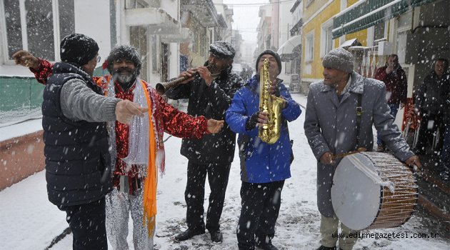 Sokaklarda davul zurna ile kar sevincini Romanların Çeribaşısı Fikri Ocak,  göbek atarak Edirnelilerle kutladı. Romanların Çeribaşısı Fikri Ocak, davul zurna eşliğinde caddelerde göbek atarak yeni yıl bahşişi de toplamayı unutmadı.