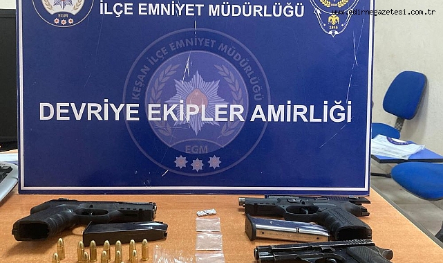 Edirne'nin Keşan ilçesinde ruhsatsız tabanca ve uyuşturucuyla yakalanan 3 şüpheli gözaltına alındı.