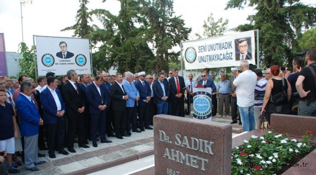 Törene T.C. Gümülcine Başkonsolosu Ali Rıza Akıncı, muavin konsoloslar Davut Ocak ve Osman Şahin, üyesi olduğumuz Avrupa Hür İttifakı (EFA) Temsilcisi Jorgos Papadakis, AK Parti Bursa Milletvekili Hakan Çavuşoğlu, AK Parti Manisa Milletvekili Doç. Dr. Selçuk Özdağ ve AK Parti 24. Dönem Ağrı Milletvekili Ekrem Çelebi, Bulgaristan’dan DOST Partisi’ni Temsilen Kırcaali Milletvekili Şabanali Ahmed, Şumnu Milletvekili Aydoğan Ali ve Kırcaali bölgesinden yedi belediye başkanı, Makedonya Türk Milli Birlik Hareketi Genel Başkanı ve Eski Milletvekili Erdoğan Saraç, Denetim Kurulu Başkanı Cevat Yakup, Genel Sekreter Edin Yakupoviç ve Gostivar Teşkilatı Meclis Üyesi Cevat Şare, BTTDD Genel Başkan Yardımcısı Dr. Mehmet Hasanoğlu, BTTDD İzmir Şubesi Başkanı Mümün Durmuş, BTTDD Keşan Şubesi Başkanı İsmail Beyli, ABTTF Başkanı Halit Habipoğlu, Genel Başkan Yardımcıları Mesut Küçük Hasan ve İbrahim Yusuf Hüseyin, Genel Sekreter Aydın Ahmet, BALGÖÇ Genel Başkan Yardımcısı Günaydın İzmirli ve Yönetim Kurulu üyesi İbrahim Alagöz, Balkan Rumeli Türkleri Konfederasyonu Genel Başkanı Zülfettin Hacıoğlu, THY Kuzey Yunanistan Müdürü Utku Yazan, Trakya Üniversitesi Balkan Araştırmaları Enstitüsü’nü temsilen Yrd. Doç. Dr. Ali Hüseyinoğlu, Sadık Ahmet ailesi adına eşi Işık Sadık Ahmet, oğlu Levent Sadık Ahmet, gelini Şerike Sadık Ahmet, kızı Funda Sadık Ahmet Alp ve akrabaları, Batı Trakya Türk Azınlığı Danışma Kurulu Başkanı ve İskeçe Seçilmiş Müftüsü Ahmet Mete, Gümülcine Seçilmiş Müftüsü İbrahim Şerif, Kozlukebir Belediye Başkanı Rıdvan Ahmet, Mustafçova Belediye Başkanı Cemil Kabza, Yassıköy Belediye Başkanı İsmet Kadı, BTTADK değerli üyeleri, Kurum ve Kuruluş Başkanları, yöneticileri ve üyeleri, Belediye Başkan Yardımcıları, Eyalet ve Belediye Meclis üyeleri, DEB Partisi Genel Başkanı Mustafa Ali Çavuş, Genel Başkan Vekili Ahmet Kara, Genel Başkan Yardımcıları Ozan Ahmetoğlu, Raif Usta, Bekir Mustafaoğlu, Ramadan Duban, Burhan Hasan, Refika Adem, Leyla Salihoğlu, Mutlu Osman Mustafa, Erdi Şerif, İsmet Tüccar, DEB Partisi Genel Sekreteri Aydın Ahmet, Yönetim Kurulu üyesi Yeşim Hasan, Kadın Kolları Başkanı Duygu Mustafa, Gençlik Kolları Başkanı Murat Ahmet, DEB Partisi MYK üyeleri, AP adayları ve çok sayıda Batı Trakya Türkü katıldı.DEB Partisi MYK üyesi ve İskeçe Gençlik Kolu Koordinatörü Mustafa Şargo’nun sunduğu program, Ahmet Arif ve Mehmet Hafız hocaların Salâ ve Aşr-ı Şerif’i okumalarıyla başladı. Dua Gümülcine Seçilmiş Müftüsü İbrahim Şerif tarafından yapıldı ve protokol konuşmalarına geçildi.İlk olarak DEB Partisi Genel Başkanı Mustafa Ali Çavuş söz alarak, tüm katılımcılara törene katılımlarından dolayı teşekkür etti. Genel Başkan rahmetli liderimiz Dr. Sadık Ahmet’i rahmetle anarak, mekânının cennet olmasını diledi. Rahmetli liderimiz Dr. Sadık Ahmet’in davasına sahip çıktıklarını, onun ilkeleriyle devraldıkları bu davayı daha ileriye taşımak için çalıştıklarını, vefatından 21 yıl geçmesine rağmen onun düşünceleriyle, haklarımız için verdiği amansız mücadelesiyle yüreklerde ve hafızalarda yaşadığını belirtti. Kendilerinin bugün bir hak arama yürüyüşü gerçekleştirdiklerini, bu mücadeleyi hakları verilene kadar sürdüreceklerini ifade etti.Ayrıca törende BTTDD Genel Başkan Yardımcısı Dr. Mehmet Hasanoğlu, ABTTF Başkanı Halit Habipoğlu, DOST Partisi Kırcaali Milletvekili Şabanali Ahmed, Makedonya Türk Milli Birlik Hareketi Genel Başkanı Erdoğan Saraç, Gümülcine Seçilmiş Müftüsü İbrahim Şerif, BTTADK Başkanı ve İskeçe Seçilmiş Müftüsü Ahmet Mete, AK Parti Bursa Milletvekili Hakan Çavuşoğlu, AK Parti Manisa Milletvekili Doç. Dr. Selçuk Özdağ, EFA İletişim Başkanı Jorgos Papadakis ve T.C. Gümülcine Başkonsolosu Ali Rıza Akıncı birer konuşma yaptılar.Yapılan konuşmalarda rahmetli liderimiz Dr. Sadık Ahmet’in mücadele aşkına, fikirlerine, halkına karşı duyduğu sorumluluğuna işaret edilerek, onun ölümsüzlüğünün altı çizildi. Tarihte böylesi dava adamlarının hiçbir zaman unutulmadığını ve bu dava insanlarını her zaman gönüllerde yaşatıldığına dikkat çekildi. Ayrıca anavatanda darbe kalkışması lanetlenerek, birlik ve beraberlik vurgusu yapıldı ve anavatana geçmiş olsun dilekleri iletildi.Son olarak teşekkür konuşmasını rahmetli liderimizin eşi ve DEB Partisi Onursal Başkanı Işık Sadık Ahmet yaptı. Rahmetli eşi Dr. Sadık Ahmet’in Batı Trakya Türkleri için önemli bir lider olduğunu, Batı Trakya Türklerinin kendisine artan bir sevgiyle sahip çıktıklarını, bundan duydukları memnuniyeti dile getirdi. Kendileri için çok kıymetli bir hatıra olan eşinin içinde vefat ettiği arabanın çalınmasını hazmedemediklerini, bu aziz hatırayı ait olduğu yere teslim edilmesini beklediklerini, bunu yapanların da adalet önüne çıkarılmasını istediklerini belitti. Tüm katılımcılara teşekkür etti.Kabirde sona eren anma töreninin ardından topluca DEB Partisi Genel Merkezi’ne geçildi. DEB Partisi Genel Merkezi’nde rahmetli liderimiz Dr. Sadık Ahmet adına Mevlid-i Şerif okundu ve iştirak eden katılımcılara yemek ikram edildi.Genel Başkan Mustafa Ali Çavuş burada bir selâmlama konuşması yaptı. Genel Başkan bugün 28 yıl aradan sonra bir HAK Arama Yürüyüşü gerçekleştirdiklerini, kabri başında rahmetli liderimiz Dr. Sadık Ahmet’i hürmetle ve minnetle andıklarını söyledi. Onun anısına düzenlenen tüm bu törenlere iştirak eden katılımcılara çok teşekkür etti. Hak Arama Yürüyüşü’nü engellemek için milliyetçi Altın Şafak’çıların kendilerini mahkemeye verdiğini, ancak bu tür baskıların kendilerini yı