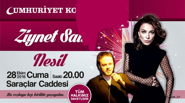 Edirne Belediye Başkanlığı, Türkiye Cumhuriyeti’nin kuruluşunun 93. Yıldönümünü 28 Ekim 2016 Cuma akşamı düzenleyeceği ‘Cumhuriyet Konseri’ ile kutlayacak. Ziynet Sali ve Nesil’in yer alacağı konserde Edirneliler Cumhuriyet coşkusunu hep birlikte yaşayacak.