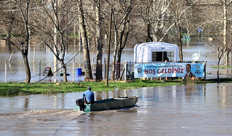 Kırkpınar zamanı pehlivanların güreş tuttuğu çayırlık alan yarım metrenin üzerinde suyla kaplı vaziyette.