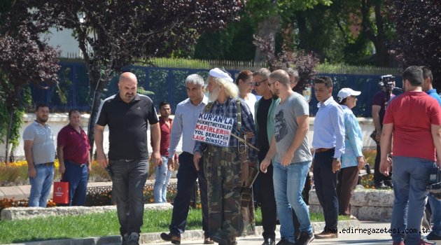 656. Tarihi Kırkpınar Yağlı Güreşleri programının Atatürk Heykeline çelenk sunumunda İstiklal Marşı okunurken, sarıklı bir şahıs “Cuma günü yaptığınız günahtır. Hepiniz yanacaksınız” şeklinde sözlü tacizde bulundu. 656. Tarihi Kırkpınar Yağlı Güreşleri programında sarıklı bir şahıs Kırkpınar kortejinde bulunanlara sözlü tacizde bulundu. Atatürk Anıtını önünde toplanan Kırkpınar korteji çelenk sunumunun ardından İstiklal Marşı okurken arka sıralardan sarıklı bir şahsın; “Cuma günü yaptığınız günahtır. Hepiniz yanacaksınız. Kur’an ile hükmetmeyenler kafirdirler” sözlü tacizine uğradı. Şahsın sesini duyan emniyet mensupları sarıklı şahsı Atatürk Anıtından uzaklaştırdı. “KUR’ANLA HÜKMETMEYENLER KAFİRLERDİR YOL ŞERİATTIR”Sarıklı şahsın yaptığı sözlü tacizden çok vücuduna astığı pankart konuşuldu. Sarıklı şahsın vücuduna astığı pankartta; “Kur’anla hükmetmeyenler kafirlerdir. Yol şeriattır. Laik dinsizdir” yazıyordu. “VATANDAŞLARDAN BÜYÜK TEPKİ”Sarıklı şahsın yaptığı sözlü tacizi ve vücuduna astığı pankartı gören vatandaşlar, yaşanılan olaya tepki gösterdi.