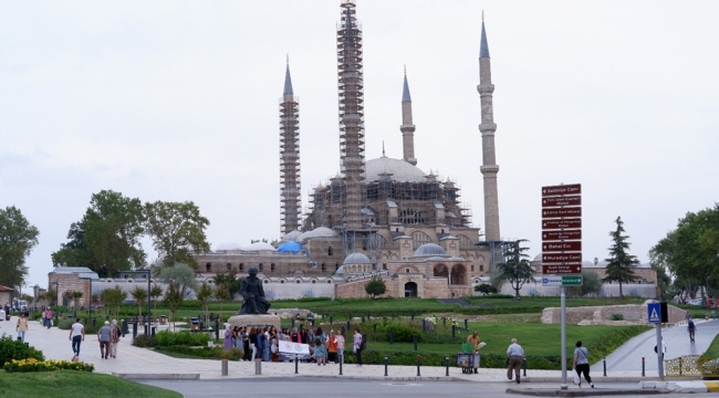 Edirne’de 1568 yılında Mimar Sinan’ın 90 yaşındayken yapımına başladığı ve 7 yıl süren çalışmaların ardından 1575 yılında ibadete açılan Selimiye Camii’nde restorasyon çalışmaları sürüyor.