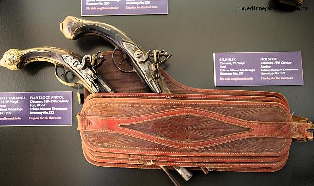 Edirne Türk İslam Eserleri Müzesi'ndeki silah teknolojisi sergisini gezenler, silahların binlerce yıllık gelişimini görebiliyor.Edirne Müzesi Müdürlüğünün ateşli ve ateşsiz silahlar koleksiyonunda bulunan farklı dönemlere ait sapan taşları, el baltaları, ok uçları, teberler, kılıçlar, tabanca ve silahlardan oluşan sergi, ziyaretçileri zamanda yolculuğa çıkarıyor.Sergide MÖ 6500 yılından başlayıp Cumhuriyet'in ilk yıllarına kadar silah teknolojisinin yaşadığı dönüşüm kronolojik olarak 9 farklı bölümde yansıtılıyor.Silah teknolojisinin gelişimini gösteren sergide, 89 eserden 81'i ilk kez ziyarete açıldı.Edirne Müze Müdürü Şahan Kırçın, AA muhabirine geniş kapsamlı bir sergiyi hayata geçirdiklerini söyledi.Silah tarihinin anlatıldığı serginin ilgi gördüğünü belirten Kırçın, "9 vitrinimizde 89 eser teşhir ediyoruz. Bu eserlerden 81'i ilk kez sergileniyor. Kronolojik bir sıralama yaparak MÖ 6500'den başlayıp Cumhuriyet'in ilk yıllarına kadar silahların gelişimini ve izlerini yansıtmaya çalıştık." dedi.Kırçın, ziyaretçilerin sergide sadece silahları değil, eserlerin üzerindeki motiflerle yapıldıkları dönemin sanatını da görme fırsatı elde ettiğini dile getirdi.Ziyaretçilerin, vitrinlerin yanında bulunan bilgilendirme panolarından detaylı bilgilere ulaşabildiğini anlatan Kırçın, şunları kaydetti:"Bu silahlar sadece birer savaş aleti değil. İnsanlık tarihinin başından beri kesici aletler farklı işlerde kullanılmaya başlamış. Zamanla gelişimle silahlar farklı yönlere evrilmiş. Ateşli silahlarla birlikte daha değişik bir yöne gidilmiş. Özellikle Osmanlı dönemi silah ve tabancaların üzerinde çok güzel süslemeler bulunmakta. Dönemi yansıtan yazı ve dualarla zamanın kültürünü yansıtan çalışmalar var. Herkesi bu güzel sergiyi görmeye davet ediyoruz." aa