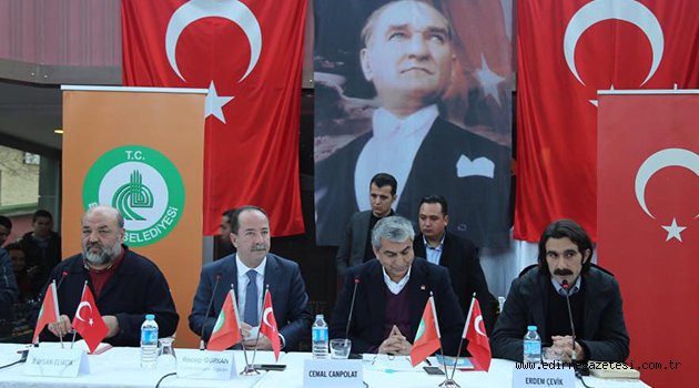Biz Edirne’ye Fatih Sultan Mehmet’in de, Şehit Ressam Hasan Rıza’nın da, aynı zamanda aydınlanma felsefesinin, hukukun sadece Osmanlı’da değil belkide tüm Dünya’da öncülerinden olan Şeyh Bedrettin’in de heykelini dikeceğiz. Bunda kararlıyım, bunda hiçbir geri adımım yok. Son birkaç gündür başta il başkanım Fevzi Pekcanlı olmak üzere bir çok arkadaşımdan öneri gelmeye başladı Şeyh Bedrettin heykelinin dikileceği yerle ilgili. Baro ile Adliye’nin arasına dikelim diyenler var ki biliyorsunuz Baro’nun mevcut yerini de Belediye olarak ben tahsis ettim, tapusunu ben verdim ve yapılmasını da ben sağladım. Onun yanında bir boşluk var. O boşluk Mart sonu gibi kalkacak. Oraya da Şeyh Bedrettin Parkı yapacağım ve heykelini de oraya dikeceğim. Sevgili eski baro başkanımız Metin Kıray abimizin de önerisi oldu. İsmet İnönü kurucusu meclisin ilk Edirne milletvekillerinden biridir. İsmet Paşa’nın da heykelini dikeceğiz Edirne’ye. Ve tarihte Edirne’ye hizmeti geçmiş tüm kahramanlarımızın da tabii ki dikeceğiz