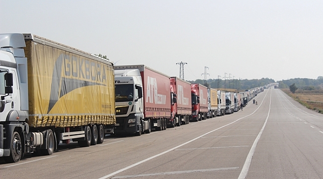 Türkiye'den Avrupa'ya geçiş yapacak tırlara uygulanan işlem süresi, Bulgaristan tarafında yoğunluk nedeniyle uzayınca tır kuyruğu Kapıkule Sınır Kapısı'nda 10, Hamzabeyli Sınır Kapısı'nda ise 7 kilometreye ulaştı.