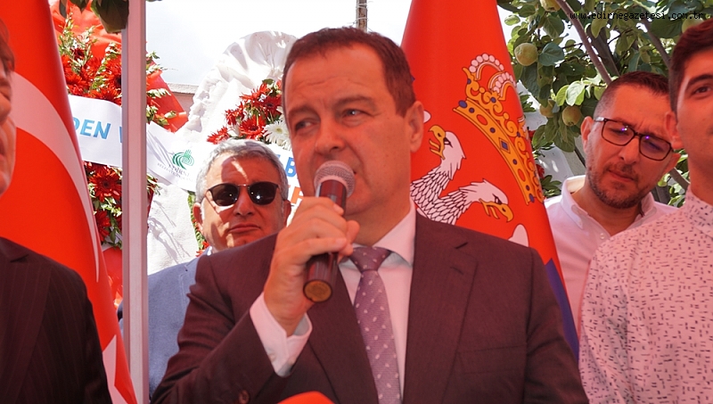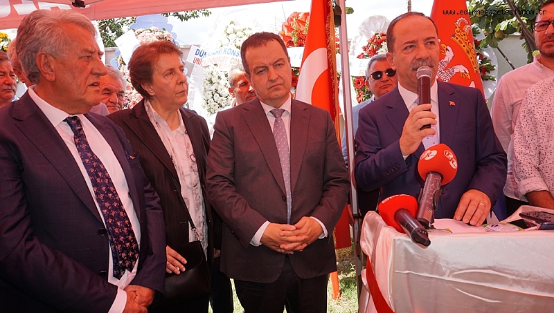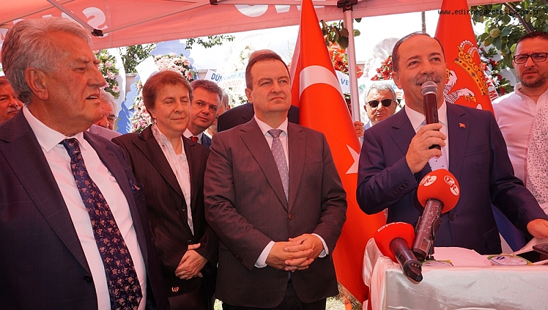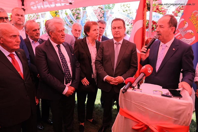 Biz komşuyuz, komşu olmamızla beraber ortak düşmanlarımız da var diyen Sırbistan Dış İşleri Bakanı ve Başbakan Yardımcısı İvica Daçiç, “Bu gün Edirne’de olmaktan dolayı çok mutluyum, Ben Salih Akgün’ü Türkiye Cumhuriyeti Cumhurbaşkanı Tayyip Erdoğan’a bisiklet armağan ettiğinde tanıştım. Ancak o bisikletleri kullanıyorlar mı bilmiyorum.Bir şeyi hiç bıkmadan tekrar tekrar memnuniyetle ifade etmek istiyorum ki Ülkelerimiz arasında ki üst düzey sıcak ilişkilerimiz çok güzel ve samimidir.Bunun kanıtı Türkiye Cumhuriyeti Cumhurbaşkanı Sayın Tayyip Erdoğan’ın ziyaret ile ilgili olacak zaten ön görüşmeler ve çalışmalar yapılıyor.İkili ilişkilerimiz gerek siyasi gerek ekonomik alanda önem arz ediyor bu güzel aynı zamanda Türkiye Cumhuriyeti dış işleri bakanlığına da teşekkür etmek işitiyorum çok kısa bir zaman içinde ivedilikle olumlu bir cevap verdiler ve bu gün Edirne’de Sırbistan Fahri Konsolosluğunu açıyoruz.Salih Akgün beyefendi her iki ülkenin de kanıtlanmış bir dostudur.Doğdu ülkenin bağlarını diri tutmak için elinden gelen her şeyi yaptı.Hala da doğdu ülke ile bağı devam ediyor.Edirne savaşında burada Sırp askerlerinde huzurunuzda saygı ile eğiliyoruz.Tarih boyunca çatışmalar ve savaşlarda vardı,ama onları hepsini geride bıraktık,şimdi ileriye dönük olarak barış içinde iş birliği içinde olacağız.Biz komşuyuz,komşu olmamızla beraber ortak düşmanlarımız da var.bizim Sırbistan konsolosluğumuz Antalya ve İzmir de de mevcut,ve Bursa’da da konsolosluk açılışı yapacağız.Bu güne burada Sırbistan Fahri konsolosumuz ile beraber açılış yapıyoruz.Bu bir dostluk simgesidir,Sırbistan Cumhuriyeti ve Türkiye Cumhuriyeti arasında,Bu konsolosluğumuzun çok aktif olmasını diliyorum.burası bir çalışma ve etkinlik merkezi olmasını diliyorum.”dedi
