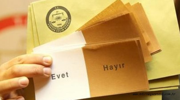 'Anayasa değişiklik' referandumunda halk oylamasına 1 gün kaldı. Edirne’de kent merkezi ve bağlı mahallelerde (köylerde) kaç seçmenin oy kullanacağı belli oldu. 16 Nisan’da yapılacak 'Anayasa değişiklik' referandumunda merkez ve merkeze bağlı köy ve beldelerde kurulacak 935 sandıkta308 bin 129 seçmen oy kullanacak.Edirne merkez ilçede 24 mahallede kurulacak olan 297 sandıkta 117 bin 109 seçmen oy kullanacak. Edirne merkeze bağlı 37 köyde kurulacak olan 47 sandıkta 10 bin 849 seçmen oy kullanacak.Enez’de kurulacak olan 33 sandıkta 8 bin 725, Havsa’da 52 sanıkta 16 bin 99 seçmen, İpsala’da 68 sandıkta 21 bin 998, Keşan’da 188 sandıkta 61 bin 654, Lalapaşa’da 31 sandıkta 5 bin 429, Meriç’te 42 sandıkta 11 bin 868, Süloğlu’nda 18 sandıkta 5 bin 71, Uzunköprü’de 156 sandıkta 49 bin 327 seçmen oy kullanacak.