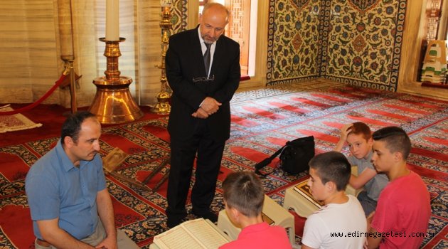 Diyanet İşleri Başkanlığı tarafından yürütülen "Değerler Eğitimi Projesi" kapsamında Yunanistan ve Bulgaristan'dan gelen 45 soydaş öğrenci, Edirne'de Kur'an-ı Kerim ve dini bilgiler eğitimi alıyor. Edirne Müftüsü Emrullah Üzüm, gazetecilere yaptığı açıklamada, eğitimler kapsamında öğrencilere hem dini hem de kültürel bilgiler verildiğini söyledi.Soydaş öğrencilere yönelik kapsamlı bir kurs düzenlediklerini belirten Üzüm, şöyle konuştu:"Hem Batı Trakya'da hem de Bulgaristan'da yaşayan soydaşlarımıza yönelik olarak iki yıldan beri bu eğitimin zeminini hazırlamaya çalıştık. Eğitimlerimiz Selimiye Camisi'nde yapılıyor. Bu yıl 45 öğrencimiz Edirne'mizde eğitim alıyor. Önümüzdeki yıl bu sayıyı yüze çıkarmak istiyoruz. Öğrencilerimizi Türkiye'ye getirerek bir ay boyunca Türkiye'nin kültürünü ve dini bilgileri onlara en iyi şekilde öğretiyoruz. Burada aynı zamanda Türkçe eğitimi de alıyor öğrencilerimiz. Eğitimlerin yanı sıra sosyal ve kültürel etkinlikler de var. Öğrencilerimiz de bu durumdan çok memnunlar."Yunanistan'ın Gümülcine şehrinden gelen Eren İmamefendi de kursun Edirne'yi ve Türkiye'yi daha iyi tanımalarına katkı sunduğunu söyledi. Kursun verimli geçtiğini ifade eden İmamefendi, "Hem dini bilgiler öğreniyoruz hem de geziyoruz. Camileri ve kültürel yerleri geziyoruz. Kursa iyi ki katılmışım. Çok mutluyum." diye konuştu.Yunanistan'ın İskeçe şehrinden gelen Feyza Karahüseyin ise kursun kendilerine önemli bilgiler kattığını ifade etti.UNESCO Dünya Kültür Mirası Listesi'nde bulunan Selimiye Camisi'nde eğitim alan öğrenciler, projenin son haftasında Osmanlı'ya başkentlik yapmış Edirne'yi gezecek, daha sonra Ankara'da Diyanet İşleri Başkanı Prof. Dr. Mehmet Görmez'le bir araya gelecek.