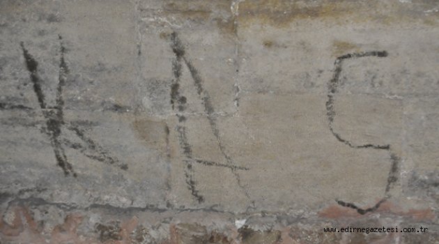 Selimiye Camii ve Arasta Çarşısını birleştiren giriş kısmına yazılan yazıyı gören vatandaşlar şaşkınlıklarını gizleyemiyor.