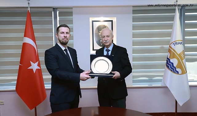Trakya Üniversitesinin Kosovalı öğrencilerin üniversite eğitimine yönelik sağladığı destekler ile Kosova’ya ve Balkanlar’a sağlık alanında sunduğu hizmetlerin bir göstergesi olarak ödüller, Birlik Genel Sekreteri Ediz Soytari tarafından Trakya Üniversitesi Rektörü Prof. Dr. Mustafa Hatipler’e takdim edildi.