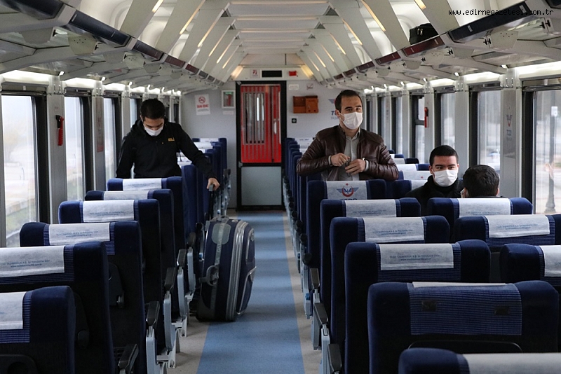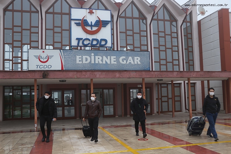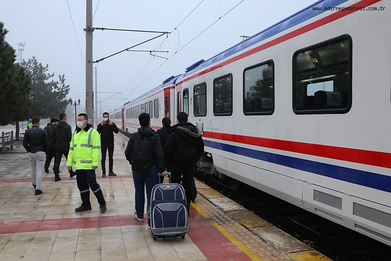 Kapıkule-Halkalı 12701 sefer sayılı tren için Edirne Garı'na gelen yolcuların HES kodu kontrol edildi, ateş ölçümü yapıldı. Girişteki el dezenfektanını kullanan yolcular maskeli şekilde bekleme salonunda sosyal mesafe kuralına riayet ederek treni bekledi. Geçen yıl mart ayından bu yana seferlerine ara veren bölgesel trenler, bir yıl aranın ardından yolcuları gidecekleri yere götürmeye başladı.