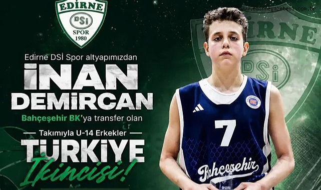 Edirne DSİ Spor altyapısından yetişerek Bahçeşehir Koleji S.K.’ne transfer olan Edirneli İnan Demircan, takımıyla birlikte U-14 Erkekler Türkiye Şampiyonası’nda Türkiye ikincisi olarak önemli bir başarıya imza attı.