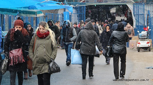 Edirne’de Cuma günleri kurulan Ulus Pazarı esnafının, bir yıl boyunca beklediği yılbaşı alışverişi yoğunluğu bu yıl kar yağışına takıldı.