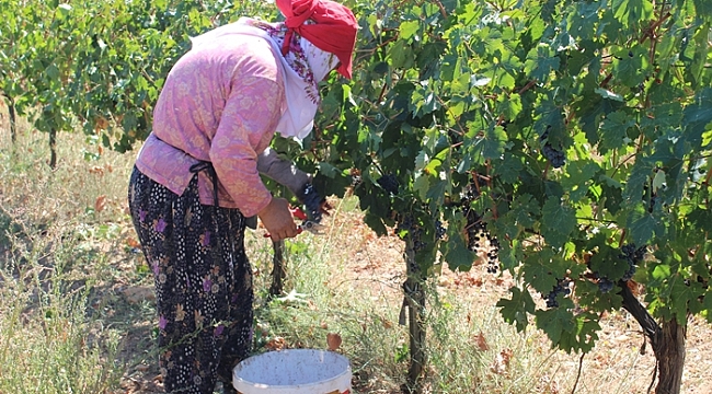 Bölgede, pekmez, üzüm şırası, pestil ve şarap yapımında kullanılmak üzere yetiştirilen üzüm salkımları tek tek kesilerek kovalarda toplanıyor, ardından işlenmek üzere tesislere gönderiliyor.