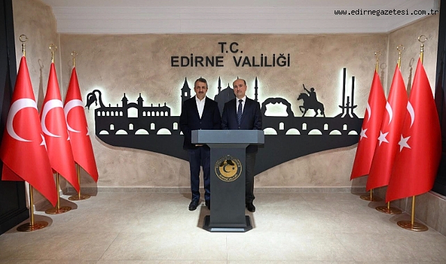 Edirne Valisi Yunus Sezer, Milli Saraylar Başkanı Yasin Yıldız'ı kabul etti.Valilikten yapılan açıklamaya göre, Yıldız, çeşitli programlar dolayısıyla geldiği Edirne'de, Vali Sezer'i makamında ziyaret etti.Sezer ve Yıldız, ziyarette Edirne Sarayı'nın ihyası kentteki tarihi eserlerin restorasyon programlarıyla ilgili bilgi alışverişinde bulundu.