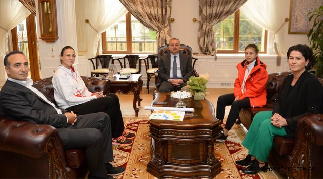 Atletizm alanında gösterdiği başarılarla adından sıkça söz ettiren Edirneli atlet Jale Başak, Türkiye Atletizm Federasyonu Milli Takımlar Antrenörü Esra Akgün Yılmaz ile birlikte Edirne Valisi Günay Özdemir’i ziyaret etti.