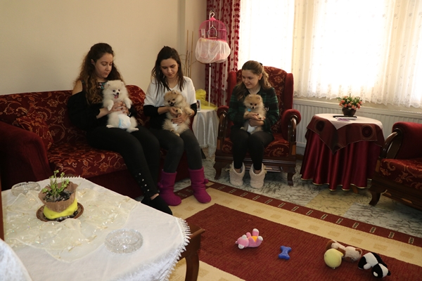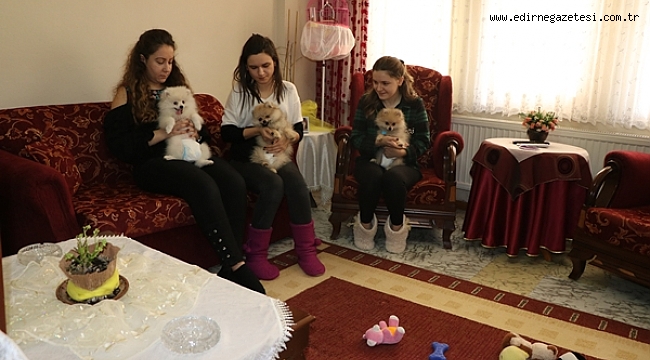 EVİNİN BİR ODASINI KÖPEKLERE VERDİYağmur Islattı, evinin bir odasını köpek yavruları için düzenlediğini belirterek, "Altlarını da bezledik. Maalesef şimdi tuvalet alışkanlıkları yok. Dışarıya da çıkartamıyoruz, başlarına bir şey gelmesin diye. Kendi köpeğimiz olmadığı için tuvalet alışkanlığı da veremiyoruz. Bir odada kapalı kalmasınlar diye altlarını bezledik, böylece bizimle, bütün gün evimizin köpeğiyle oynuyorlar. Yorulduklarında ise odalarına gidip yatıyorlar." diye konuştu.Edirne'de, yurda kaçak yollarla getirilmek istenirken sınır kapısında yakalanan üç Pomeranian ve iki buldog cinsi yavru köpek, Kapıkule Sınır Kapısı'ndaki Edirne Tasfiye İşletmeleri'nde 20 Şubat'ta ihale ile satışa sunulacak.